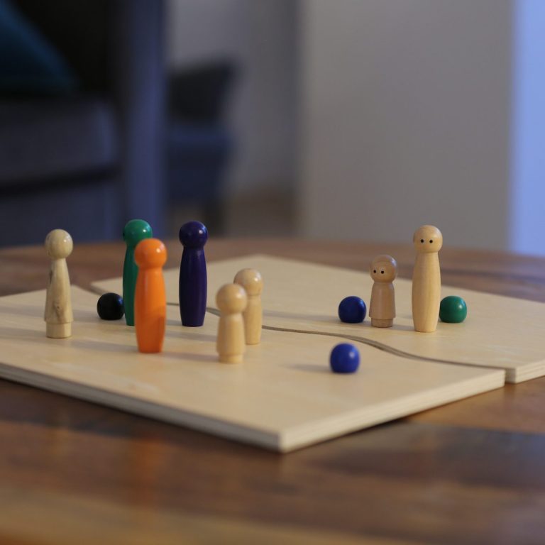 Innere und zwischenmenschliche Themen räumlich darstellen, z.B. am Familienbrett oder mit Bodenankern.